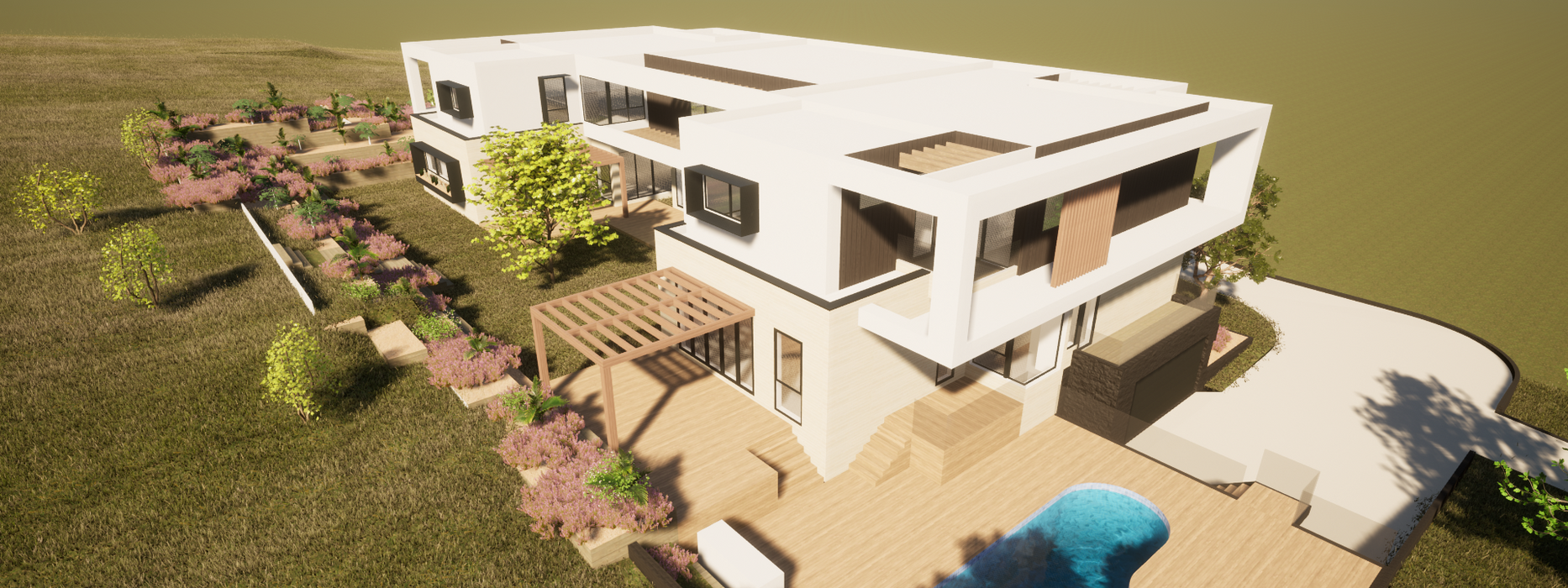 Single storey home for a young family – to include master suite + 3-4 bedrooms + kitchen with large island and butler’s pantry + family living and dining + formal living / media room + games room + 3-4 car garage. Respond to available views, solar access and site topography. Main construction material to be sandstone masonry.